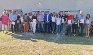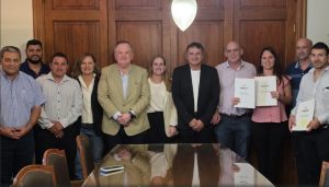 Felipe Michlig y Vicky Tejeda encabezaron la firma de convenios para cinco localidades del departamento San Cristóbal