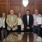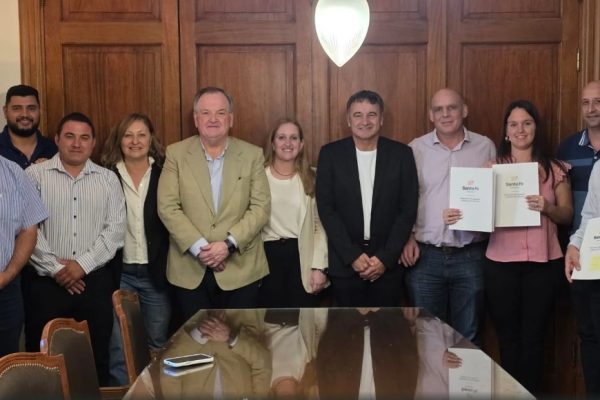 El Presidente Provisional de la Cámara de Senadores y Senador por el departamento San Cristóbal, Felipe Michlig, recibió en la Sala de Reuniones de Presidencia del Senado en la ciudad de Santa Fe a la ministra de Igualdad y Desarrollo Humano, Victoria Tejeda, para la firma de convenios del programa «Buenas prácticas» para las localidades…